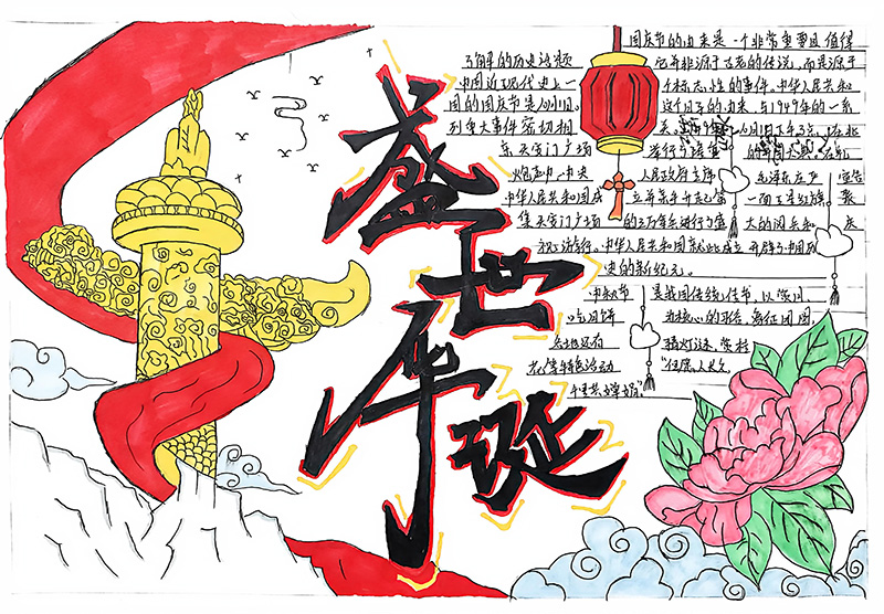 一幅幅黑板报,一张张手抄报,承载的是学子们对祖国的热爱与祝福。正如一位同学在作品中所写:“泱泱华夏,一草一木皆是硕果;神州大地,一思一行皆为未来。”