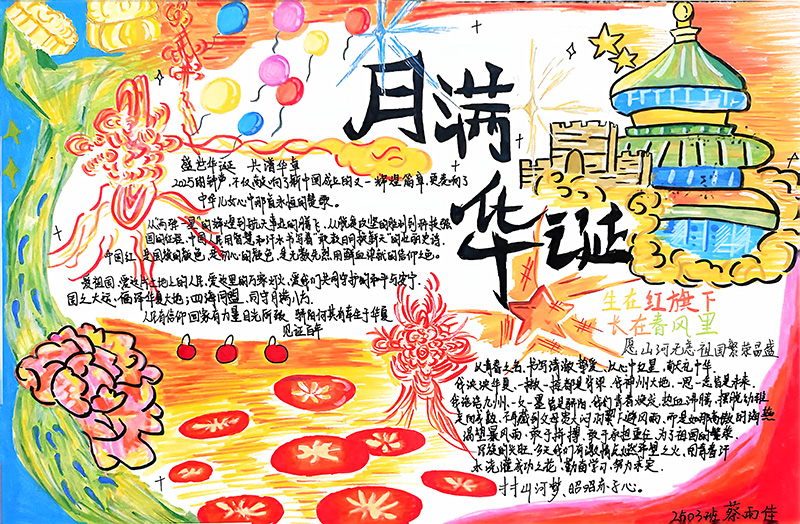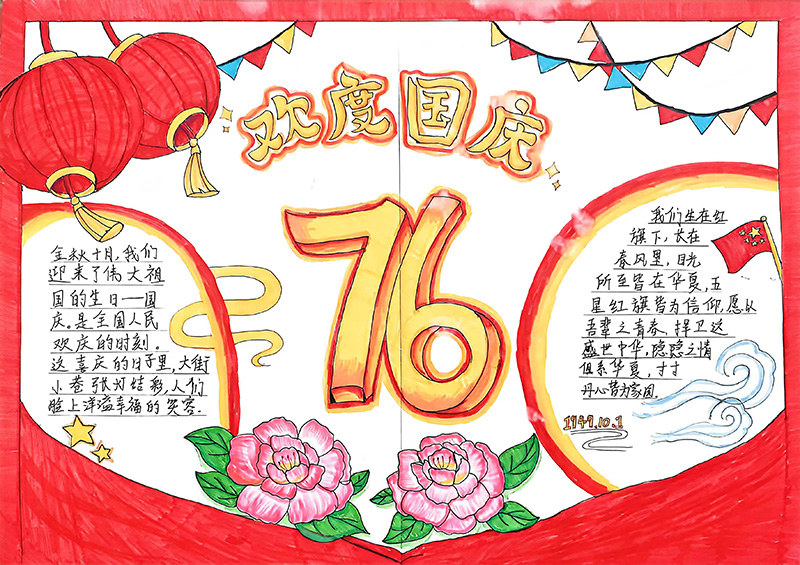 一幅幅黑板报,一张张手抄报,承载的是学子们对祖国的热爱与祝福。正如一位同学在作品中所写:“泱泱华夏,一草一木皆是硕果;神州大地,一思一行皆为未来。”