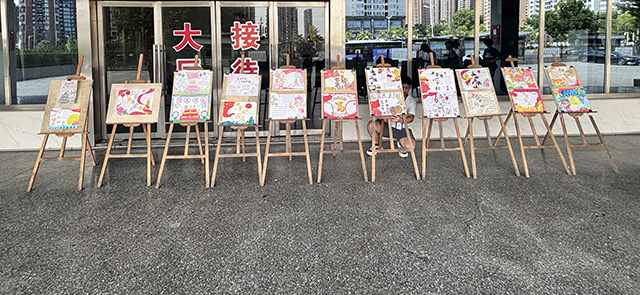 同学们用手中的画笔,描绘出心中的祖国形象,书写下对祖国的祝福。
